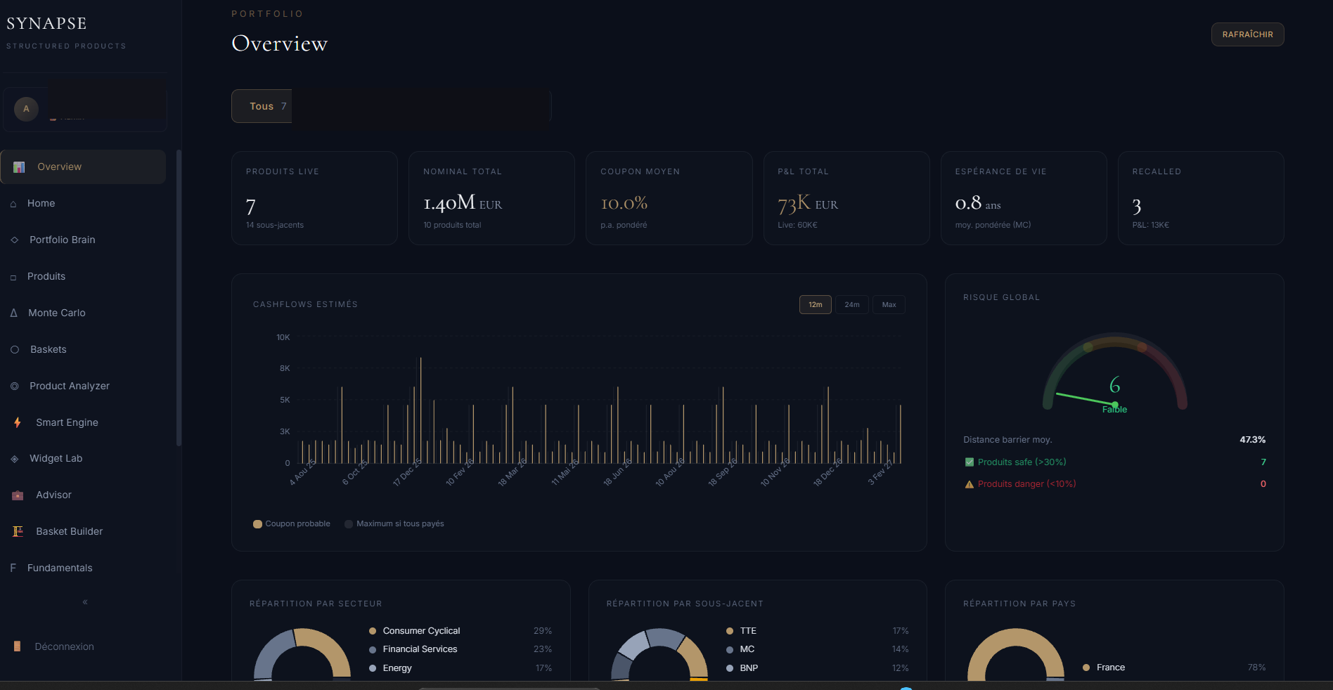 Our proprietary platform integrates quantitative tools and Artificial Intelligence to explore thousands of combinations and prioritise the most robust structures.